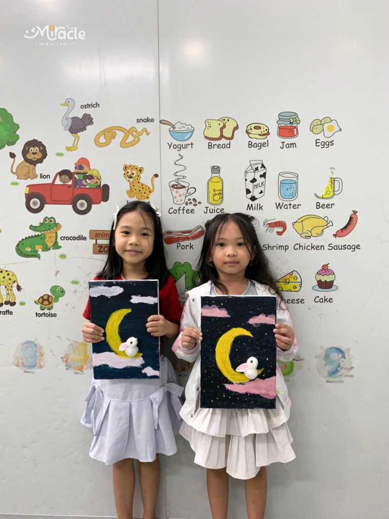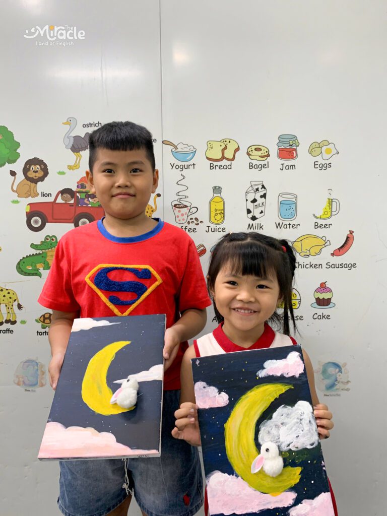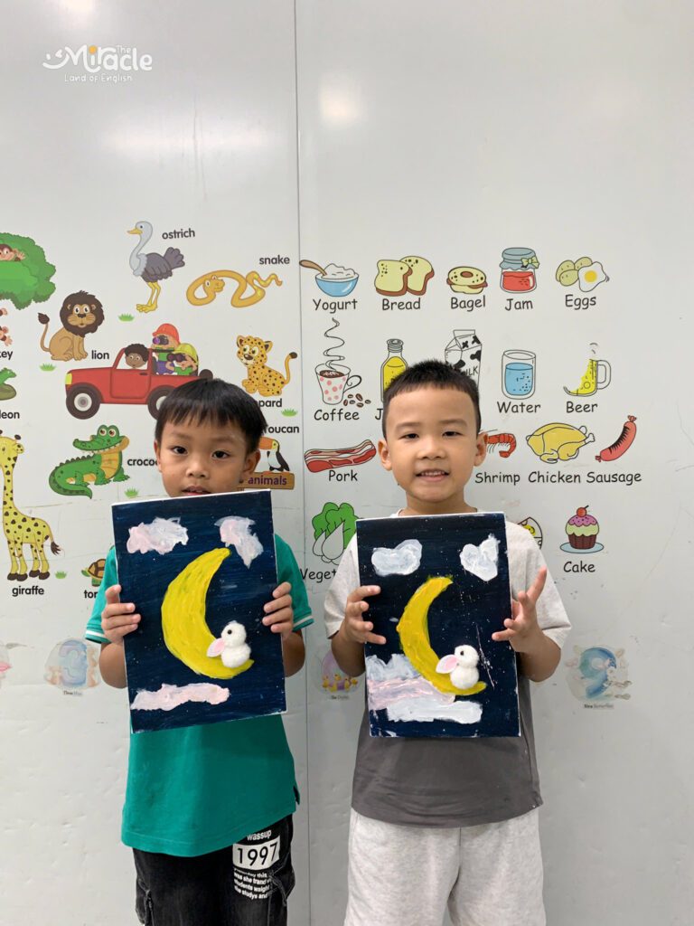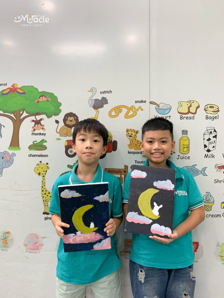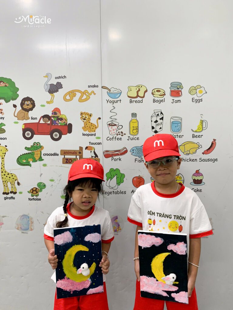 Và đây là các tác phẩm đã được hoàn thành – mỗi bức tranh là một câu chuyện, là nơi các bé gửi gắm tình yêu và sự hồn nhiên dành cho mùa trăng tròn.